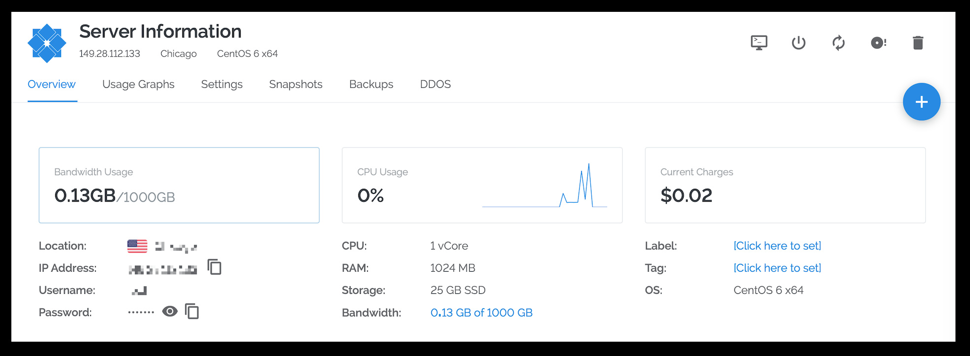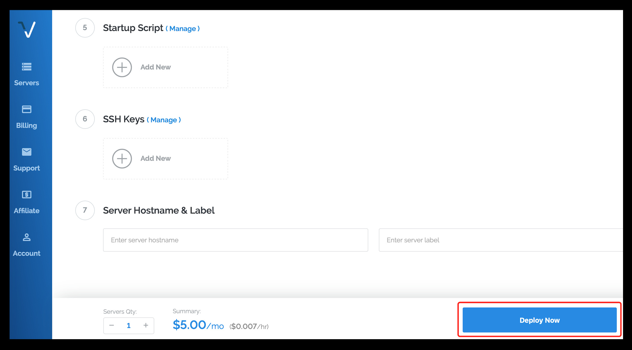 - 虽然是 - $5.0一个月,但是- Vultr的服务器实际是按小时扣费的,这样的好处就是可以随时更换服务器,反正是按小时扣费的。