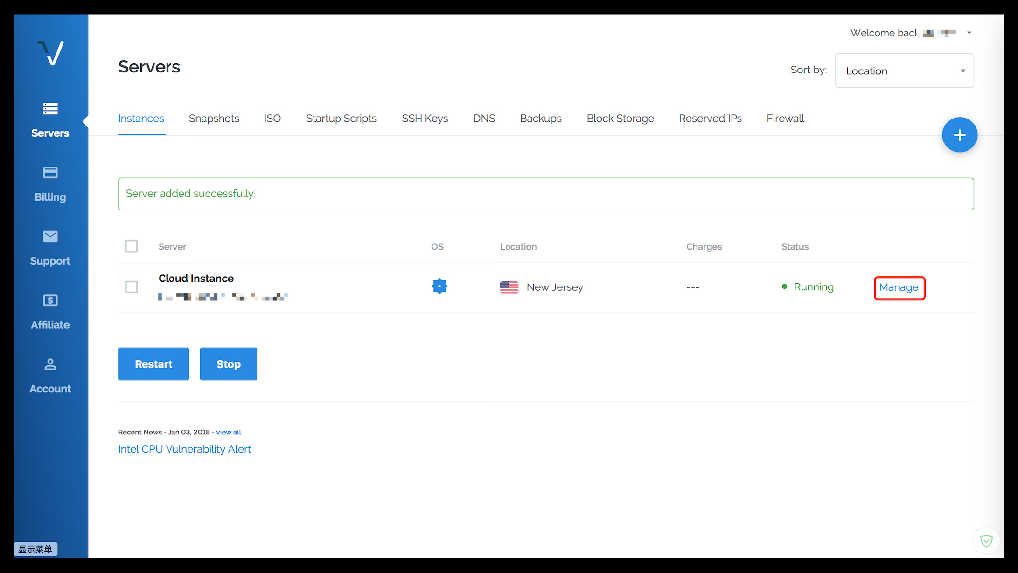 - 部署完成后就可以在 Servers里面看到你部署好的服务器了,点击Manage查看服务器信息。