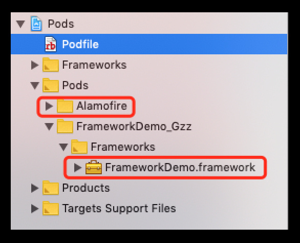 - 可以看到 - pod将我们的- framework和- Alamofire依赖库一起- pod下来了。![]()